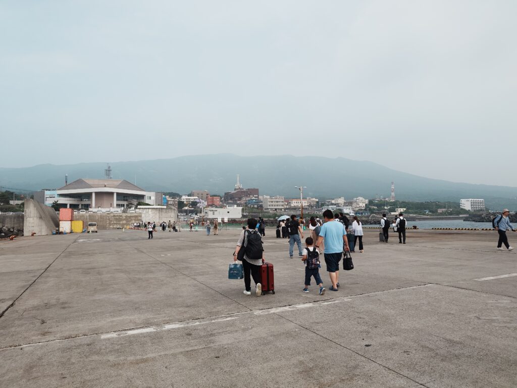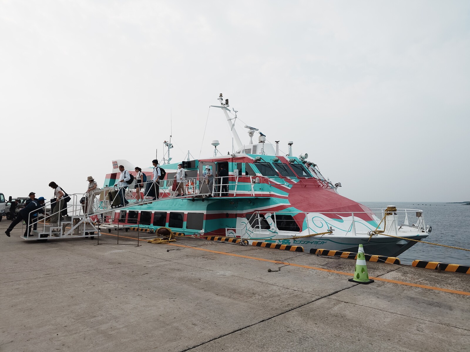 到着したのは「元町港」。この日は、波が穏やかだったから、岸壁が外洋にむき出しになっている、島の中心地のこの港に着いた。