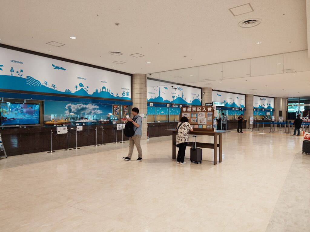 明るくてすごく広々としたターミナル。このターミナルがある竹芝桟橋からは、伊豆七島や小笠原諸島といった東京都の島しょ部へと向かう「東海汽船」の船が発着している。
