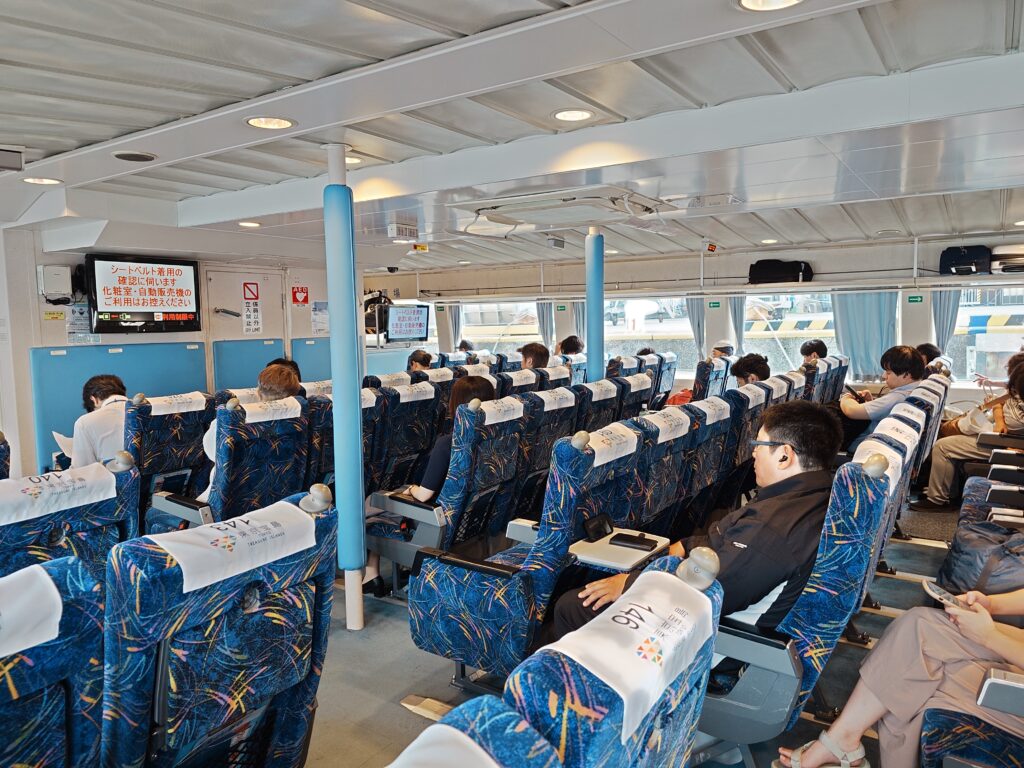 この日ボクが乗り込んだのは、ジェット船。スピードが出てくると水中に羽を沈めて船体を空中に浮かせ、高速で目的地へと向かう船なんだ。なかなかの勢いで、揺れもほとんどなく、まるで、飛行機に乗ってるような乗り心地。あまりにも心地よくて、途中からはすっかり居眠りしてしまったほど。