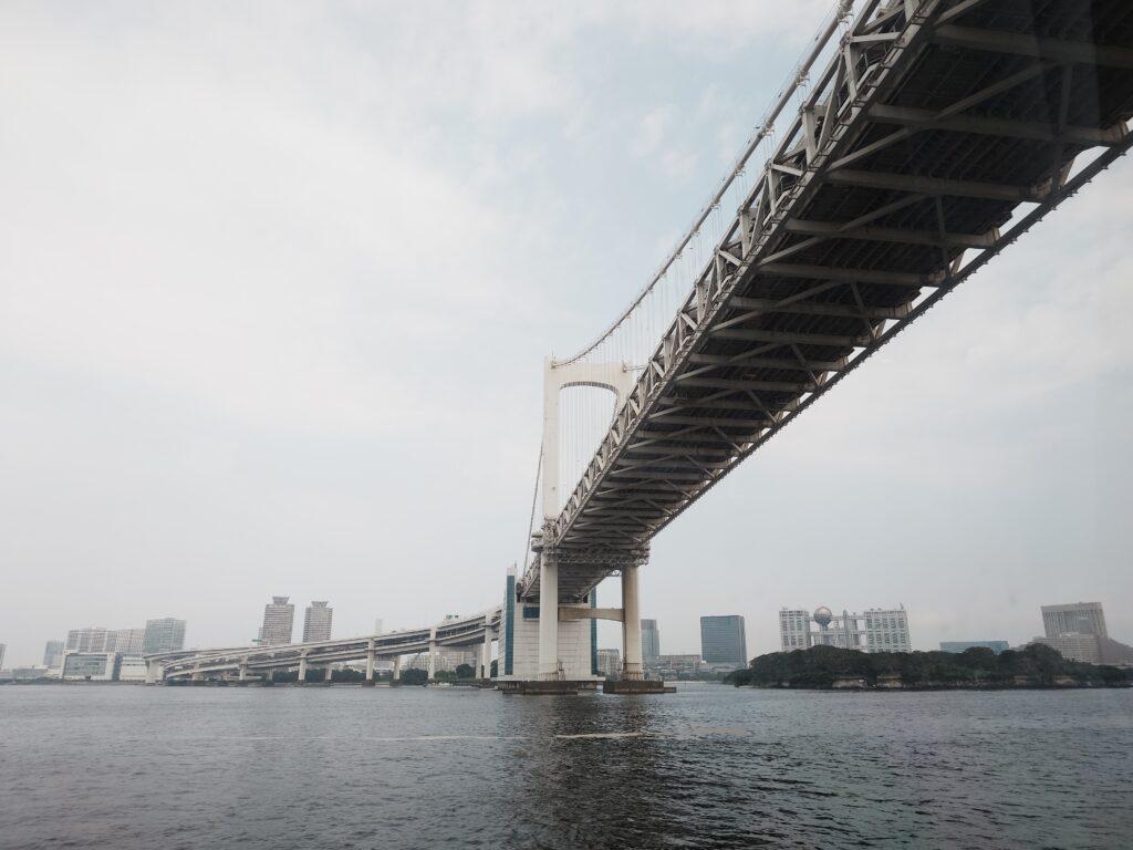 竹芝を離れた船は、しばらくはゆっくりと進む。やがてレインボーブリッジの下を抜けると、今度は、南へと向かうんだ。こんなアングルで見られるとは、なんだか得した気分。